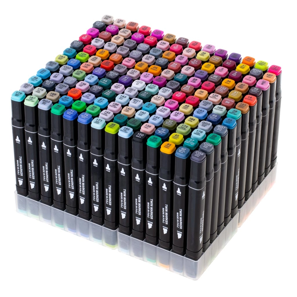 See täielik komplekt pakub muljetavaldavat toonide spektrit igaks tehnikaks. Alkoholipõhine tint kuivab kiiresti, katab kaunilt ja võimaldab sujuvaid üleminekuid ilma soovimatute triipudeta. Igal markeril on 2 otsa – lai pindadele ja peen joontele ning detailidele.