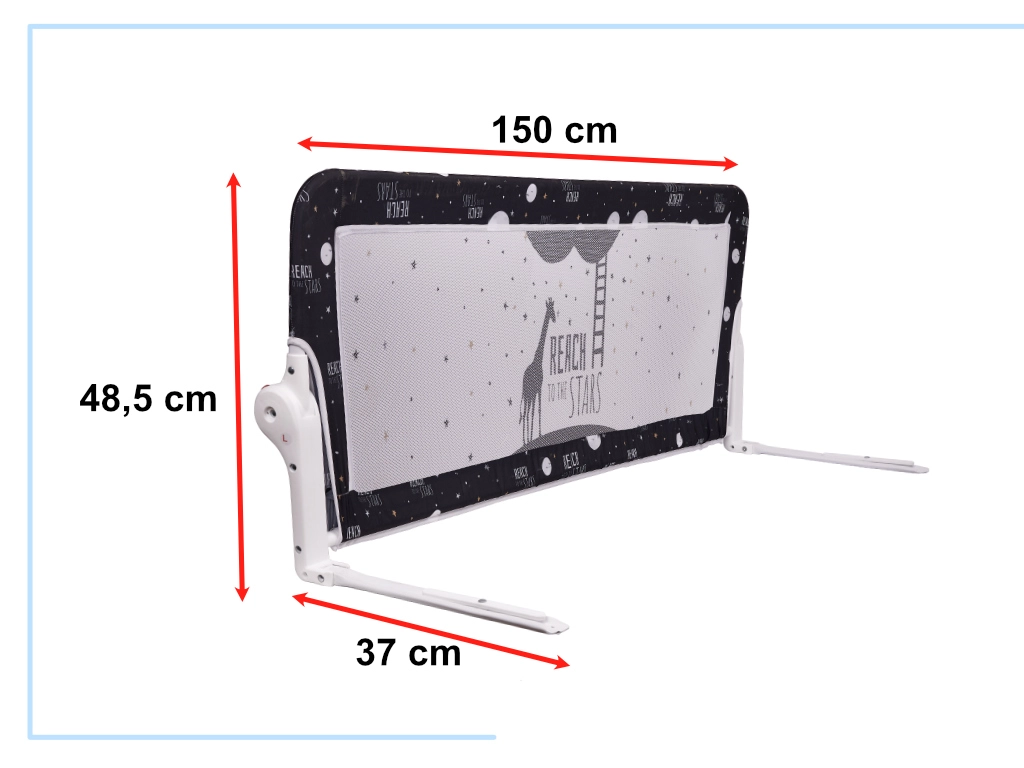 Paigaldus on kiire: libistage raam tekstiilkattesesse, lükake toejalad madratsi alla ja ongi valmis – ilma puurimise ja tööriistadeta. Tänu klapihingedele saab piirde hõlpsalt klappida madratsitasemest allapoole, et oleks mugav voodit teha või toodet hoiustada. Hingav võrk on meeldiv puudutusele ning kaitseb samal ajal turvaliselt kukkumise eest.