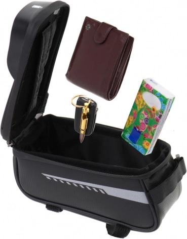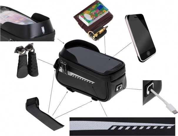 See veekindel jalgrattakott on täiuslik lisavarustus igale ratturile, kes otsib funktsionaalset ja vastupidavat lahendust pikkadeks sõitudeks. See on varustatud spetsiaalse telefonitaskuga, et saaksite telefoni lihtsalt kasutada navigatsioonina või muusika esitajana sõidu ajal. Hoidik on kujundatud nii, et telefon jääb nähtavaks ja ligipääsetavaks läbi läbipaistva ja veekindla akna.