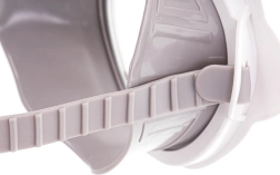 Pehme silikoon koos plastiga tagab meeldiva sobivuse näole ning vähendab vee sattumist silmade ja nina juurde.