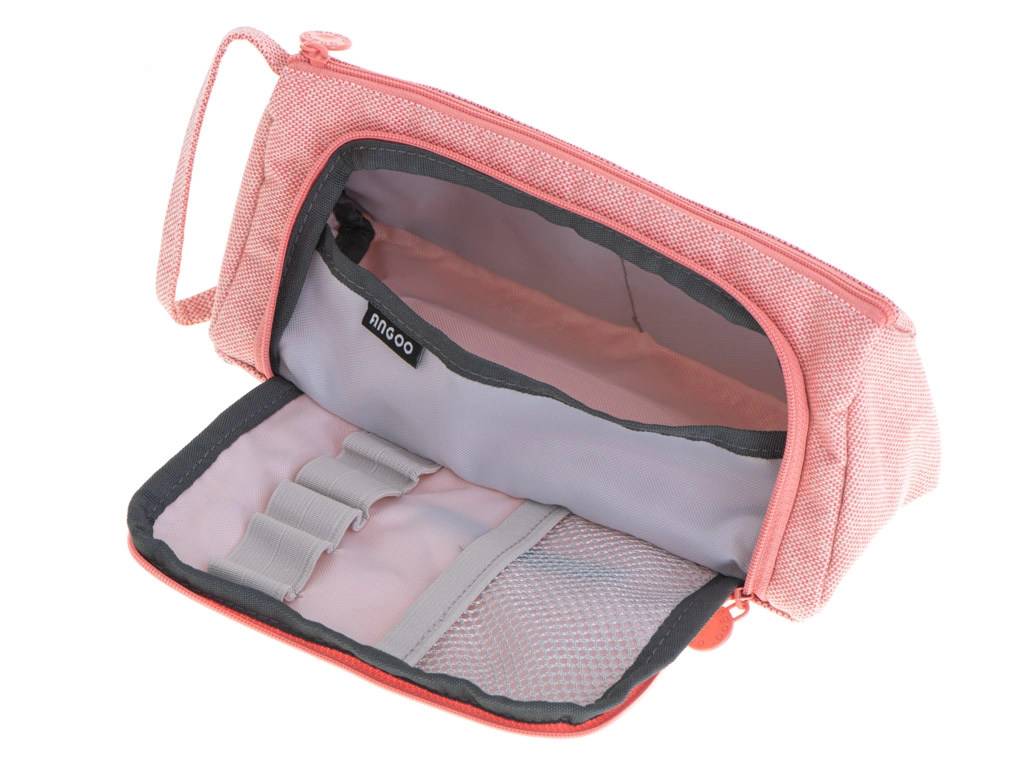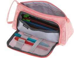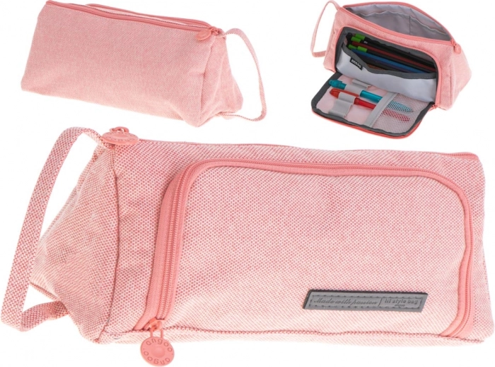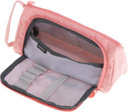 Praktiline ja stiilne 3‑ühes pinal/organisaator roosas värvitoonis, mis sobib nii koolipinaliks, kosmeetikakotiks kui ka reisivutluks. Pakub rohkelt ruumi kirjutusvahenditele või kosmeetikale, vastupidavat materjali, selgeid sisemisi taskuid ja elastseid aasukesi ning mugavat tõmblukku koos kandmisaasaga.