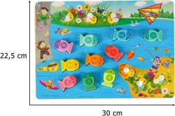 Lõbus ja hariv puidust mäng lastele ühendab magnetilise kalapüügi, kujude sortimise ja numbrite õppimise. Värvikas montessori komplekt arendab peenmotoorikat, kontsentratsiooni ja kannatlikkust – ideaalne esimesteks sammudeks värvide, kujundite ja loendamise tundmaõppimisel.