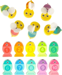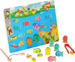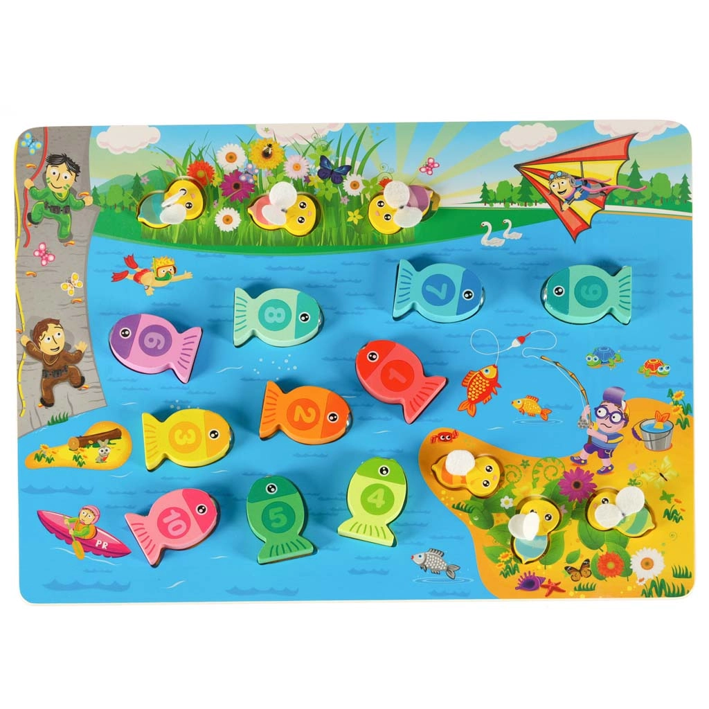 See loominguline montessori komplekt pakub lastele kolm mänguviisi: kalade püüdmine magnetiga õnge abil, numbritega kalade sobitamine õigete avadega ning peenmotoorika treenimine mesilastega pintseti abil. Erksavärvilised detailid motiveerivad mängima, samal ajal kui kvaliteetne ümardatud servadega puidust teostus tagab ohutuse.