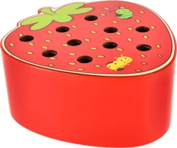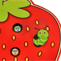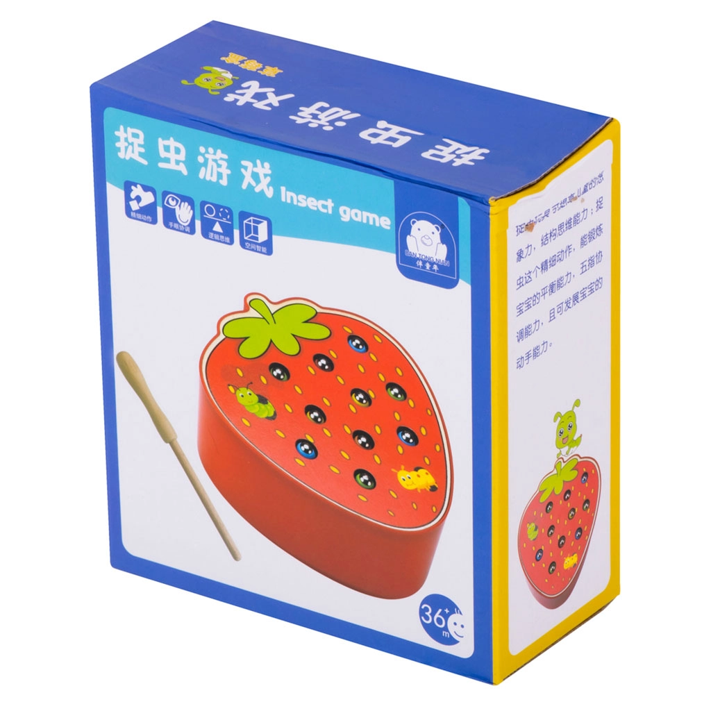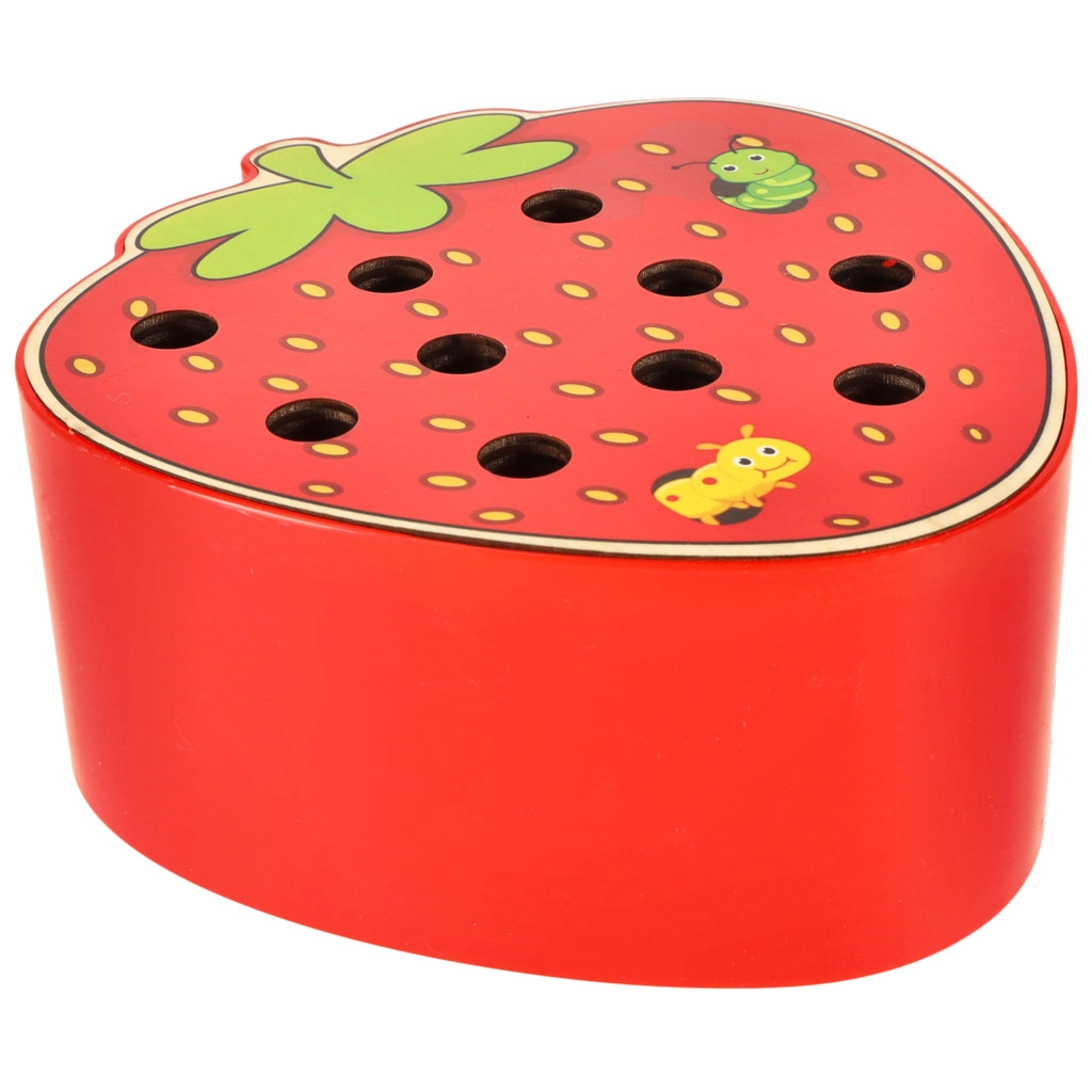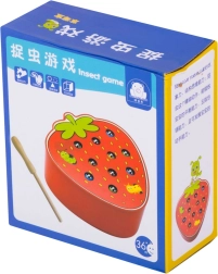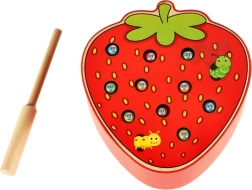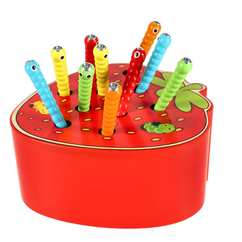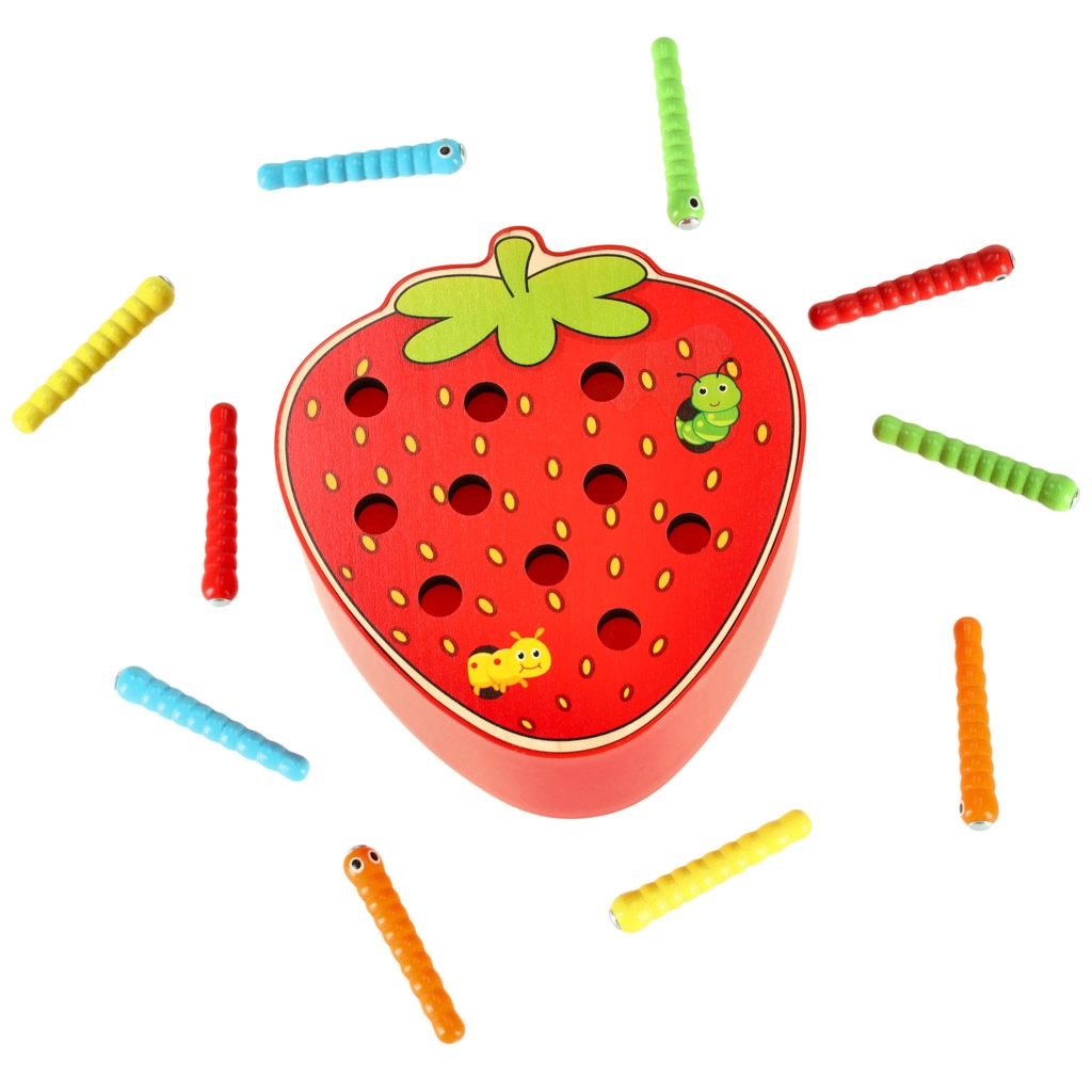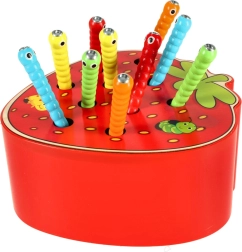 See magnetmäng maasika kujul pakub lastele meelelahutust pikkadeks tundideks. Maasika sees peitub 10 värvilist metallotsaga röövikut, mida laps püüab ja tõstab välja magnetiga puupulga abil. Raskem variant on püütu röövik täpselt oma pesasse tagasi asetada.