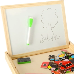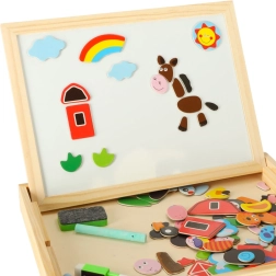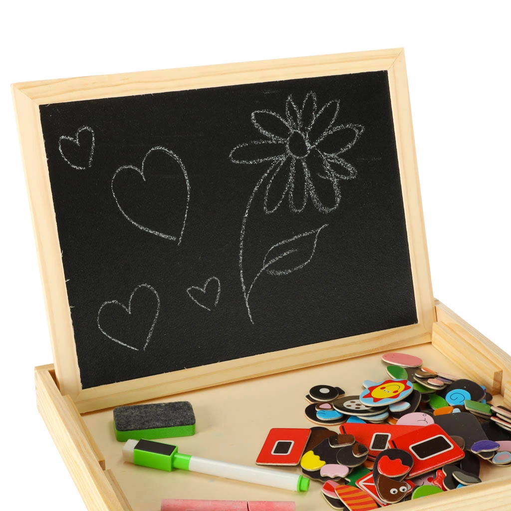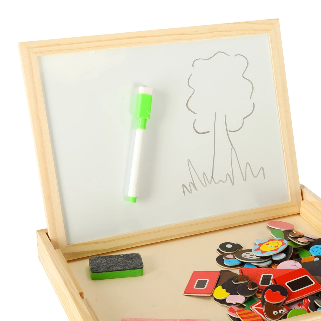 Kahepoolne puidust tahvel magnetpusledega on ideaalne laste loovaks meelelahutuseks. Tahvel on valmistatud kvaliteetsest naturaalpuidust ning sisaldab erinevaid elemente, mis toetavad õppimist ja mängu.