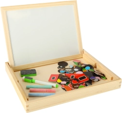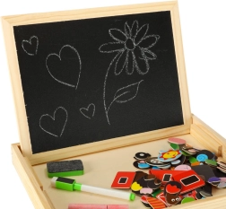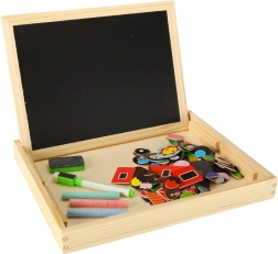 Pakub valget magnetpinda puslede ja markeriga kirjutamise jaoks ning musta kriidipinda traditsiooniliseks kriidiga joonistamiseks.