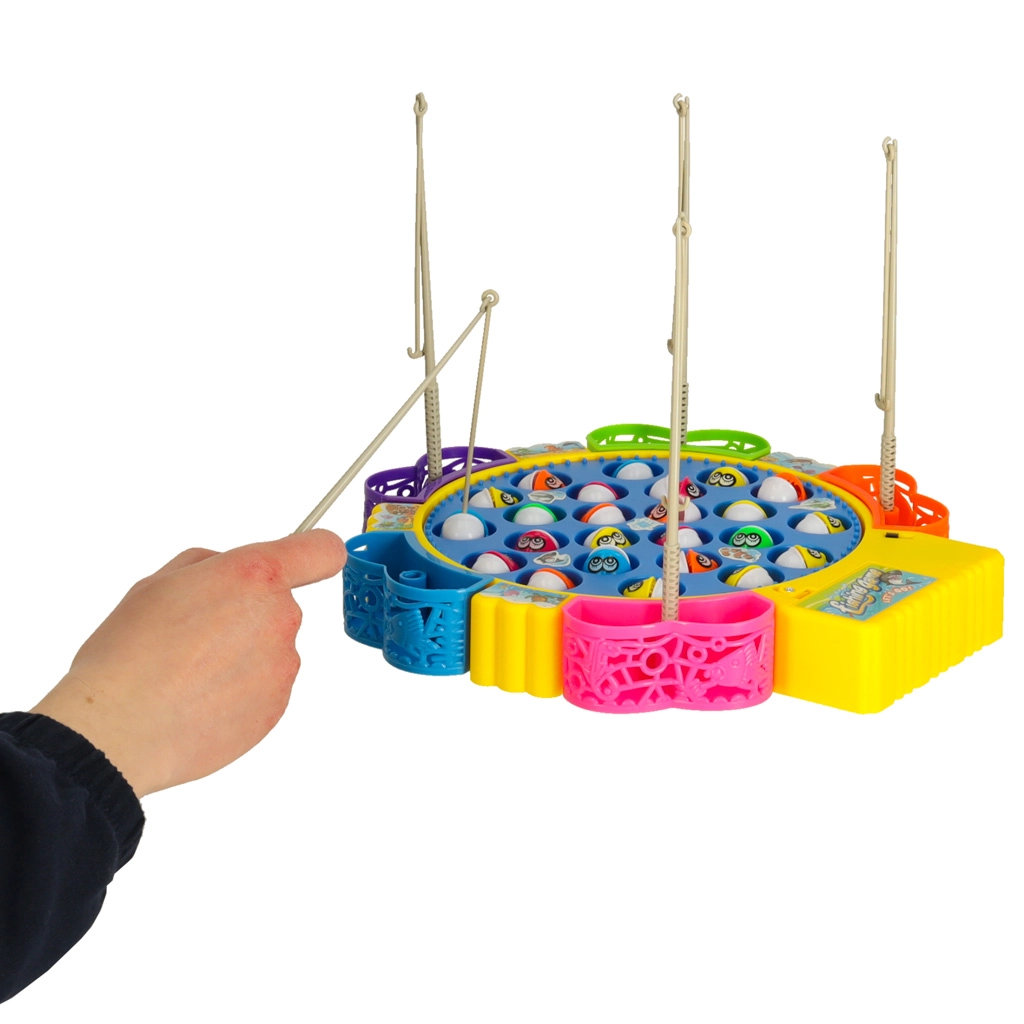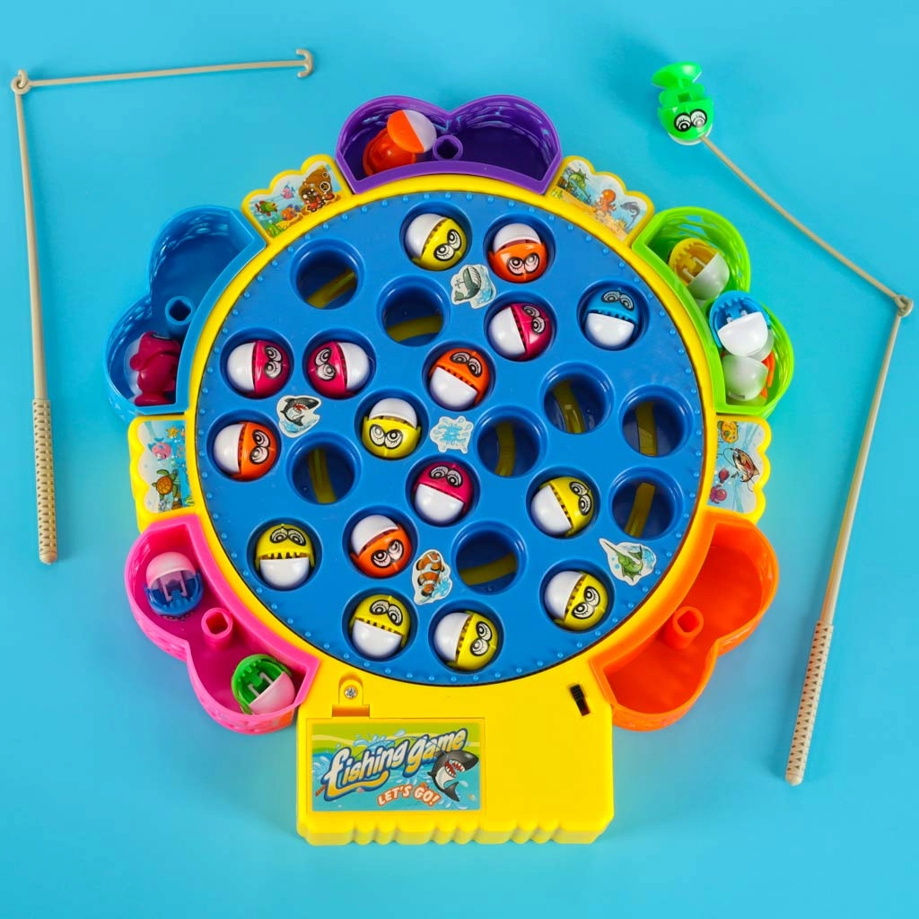 Rõõmus elektriline kalapüügimäng pakub pinget ja naeru kogu perele. Ringikujuline tiigike pöörleb aeglaselt, pannes kalakesed liikuma, mis avavad ja sulgevad suud – õige ajastus teeb sinust kalapüügi meistri. Heliefektid muudavad mängu õhkkonna veelgi lõbusamaks.