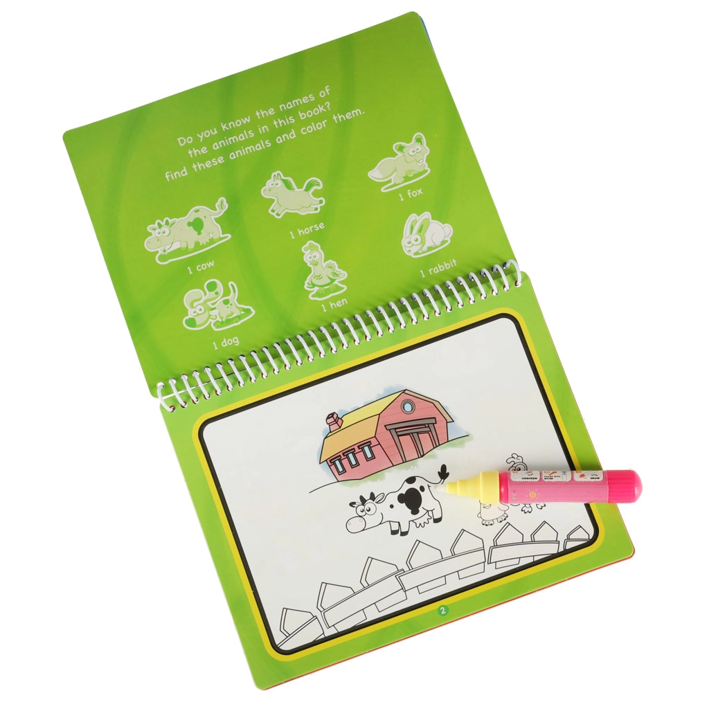 Avasta lõbus taluteemaline veevärviraamat, mis värvub vaid veega – ilma segaduseta! Täida kaasasolev pastakas veega ja värvid ilmuvad võluväel. Ideaalne väikestele kunstnikele, arendab loovust, peenmotoorikat ja pakub turvalist, puhast värvimist nii kodus kui ka teel.