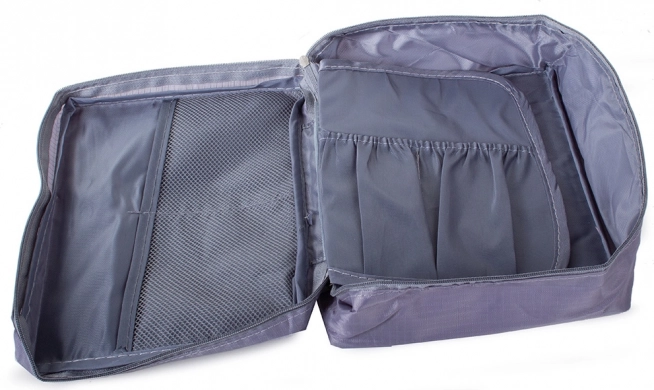 See hall kosmeetikatarvete reisikorraldaja pakub piisavalt ruumi kõigile teie tarvikutele. Sellel on üks põhisahtel ja väljatõmmatav kamber kahe taskuga, mis suletakse takjakinnitusega ning võimaldab mahtu suurendada. Lisaks on sellel kaks võrktaskut pisiesemetele.