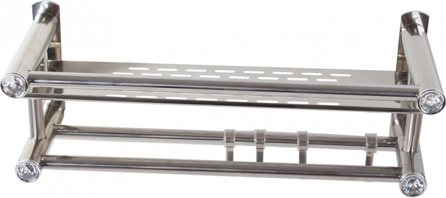 Kerge alumiinium tagab niiskuskindluse ja lihtsa hoolduse. Paigaldus on lihtne ja stabiilne, vajalik kinnituskomplekt kuulub komplekti. Dekoratiivne viimistlus kristall-elementidega annab riiulile diskreetse särtsu.