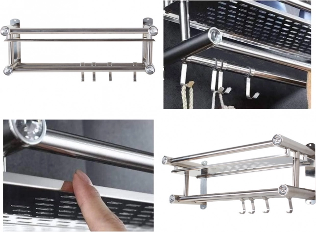 - Riiul konksude ja topeltpulgaga, kinnitusdetailid (kruvid, tüüblid)
