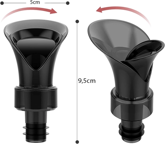 Kõrgekvaliteediline vastupidavast plastist ja kummist teostus sobib enamikule pudelitele läbimõõduga 20–24 mm. Minimalistlik must disain sobib igasse majapidamisse ja baari ning lihtsustab serveerimist professionaalse tulemusega.