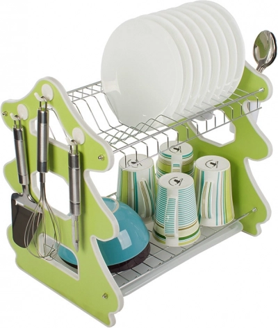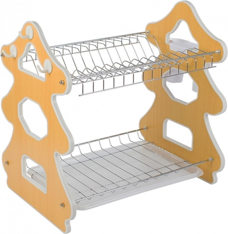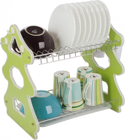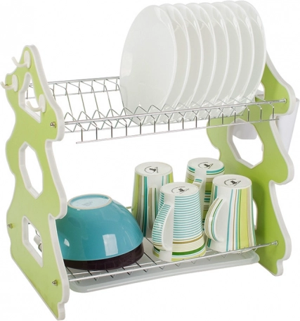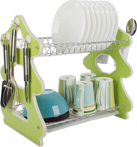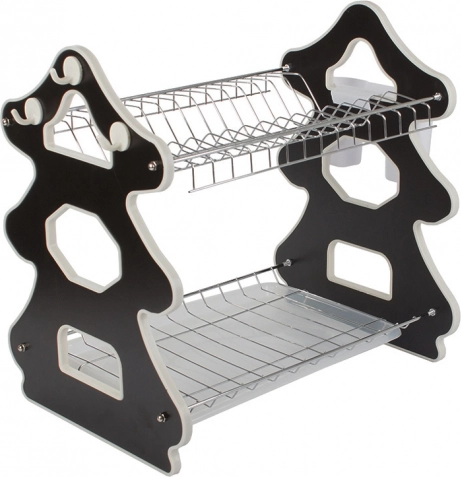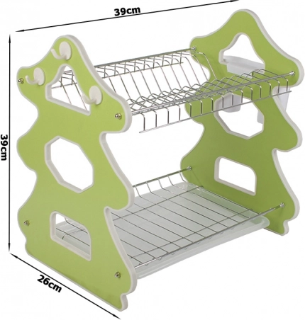 Elegantne kahekorruseline nõudekuivatusrest sobib nii väikestesse kui ka avaratesse köökidesse. Ülemine tase mahutab kuni 14 taldrikut, alumine on mõeldud kaussidele, tassidele ja klaasidele. Külgmise söögiriistade korraldaja saab paigutada ümber kogu perimeetri ulatuses ja kolm praktilist konksu sobivad rätikute või köögiriistade jaoks.