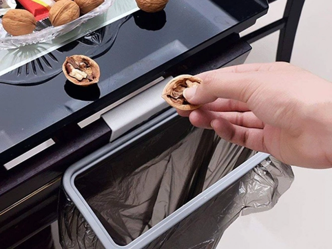 Hoia kord majas vähese vaevaga. Riputatava hoidiku saab lihtsalt asetada kapiukse või sahtli servale (kuni 20 mm paksusele) ning kohe on mugav visata jääke ja pakendeid. Tihedalt sulguv kaas takistab lõhnade levikut ja aitab hoida köögi hügieenilisena.