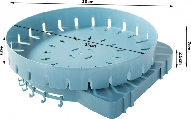 Töömõõtudega 26 cm läbimõõdus ja 7 cm kogukõrguses pakub see korraldaja moodsa lahenduse hoiuvajadustele ning on saadaval kahes värvitoonis: sinine ja kollane.