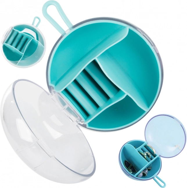 See elegantne reisiehtekarp aitab hoida teie väärisesemed turvaliselt ja korrapäraselt. Vastupidavast plastist ümmargusel karbil on erinevat tüüpi ja suurusega lahtrid, sh sõrmusehoidjad, nii et igal esemeel on oma koht. Läbipaistev kaas võimaldab sisu kiiresti kontrollida ilma avamata ning kummist rihm tagab mugava kandmise.