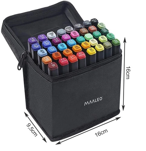 Vastupidav tekstiilist vutlar hoiab kõik 40 markerit korrastatult ja turvaliselt. Kompaktsed mõõtmed 16 × 16 × 9,5 cm teevad hoiustamise ja reisimise lihtsaks.