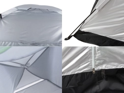 Ülemise ventilatsiooniava saab vihma korral katta. Tugevdatud põhi kaitseb maapinnalt tuleva niiskuse eest ning telgi saab hõlpsasti kinnitada vaiadega. Pärast kokkupakkimist võtab see minimaalselt ruumi ja kandekoti koos käepidemega abil on seda mugav kanda.
