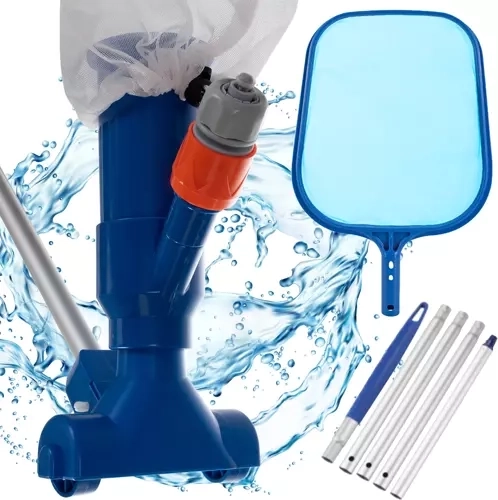 Selle universaalse komplektiga puhastad pinna, seinad ja basseini põhja pingutuseta. Tolmuimeja ühendub standardse voolikuga kiirliitiku kaudu – veesurve imeb mustuse kangast kotti ja puhas vesi suunatakse tagasi. Võrk hoolitseb lehtede, putukate ja muu ujuva mustuse eest.
