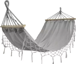 Naudi rahulikku puhkust õues ja toas mugavas GARDLOV kiikvõrgus mõõtudega 200 × 100 cm. Tänu vastupidavale puuvillale polüestri seguga, puidust vaheprussidele ja kandevõimele kuni 200 kg pakub see stabiilsust, mugavust ja suurepärast õhutust ka kuumadel päevadel. Punutud riputusnöörid tagavad turvalise kinnituse, lihtne kokkupakkimine kotti aga mugava kaasavõtmise aeda, rõdule, terrassile või veekogu äärde.