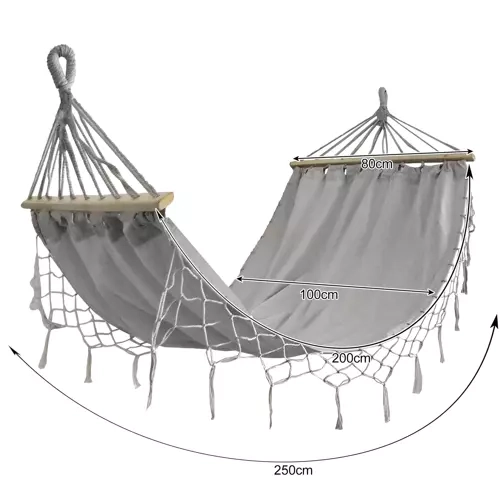 Tänu kandevõimele 200 kg ja tugevasti põimitud riputusnööridele on lamamine turvaline ja stabiilne. Kogupikkus 270 cm võimaldab lihtsat riputamist puude vahele või raamile. Pärast kasutamist saab võrgu kiiresti rullida praktilisse kotti, mistõttu sobib see suurepäraselt aeda, terrassile, rõdule ja reisidele.